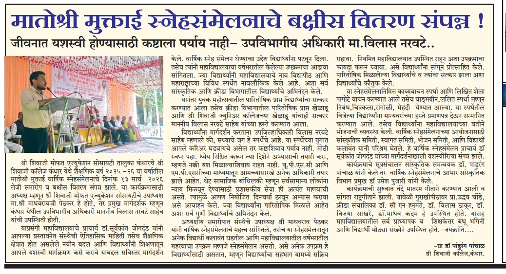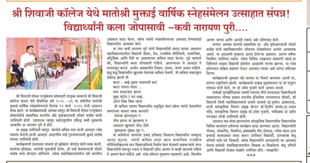© Shri Shivaji College of Arts, Commerce & Science, Kandhar. All Rights Reserved. Designed by Biyani Technologies
