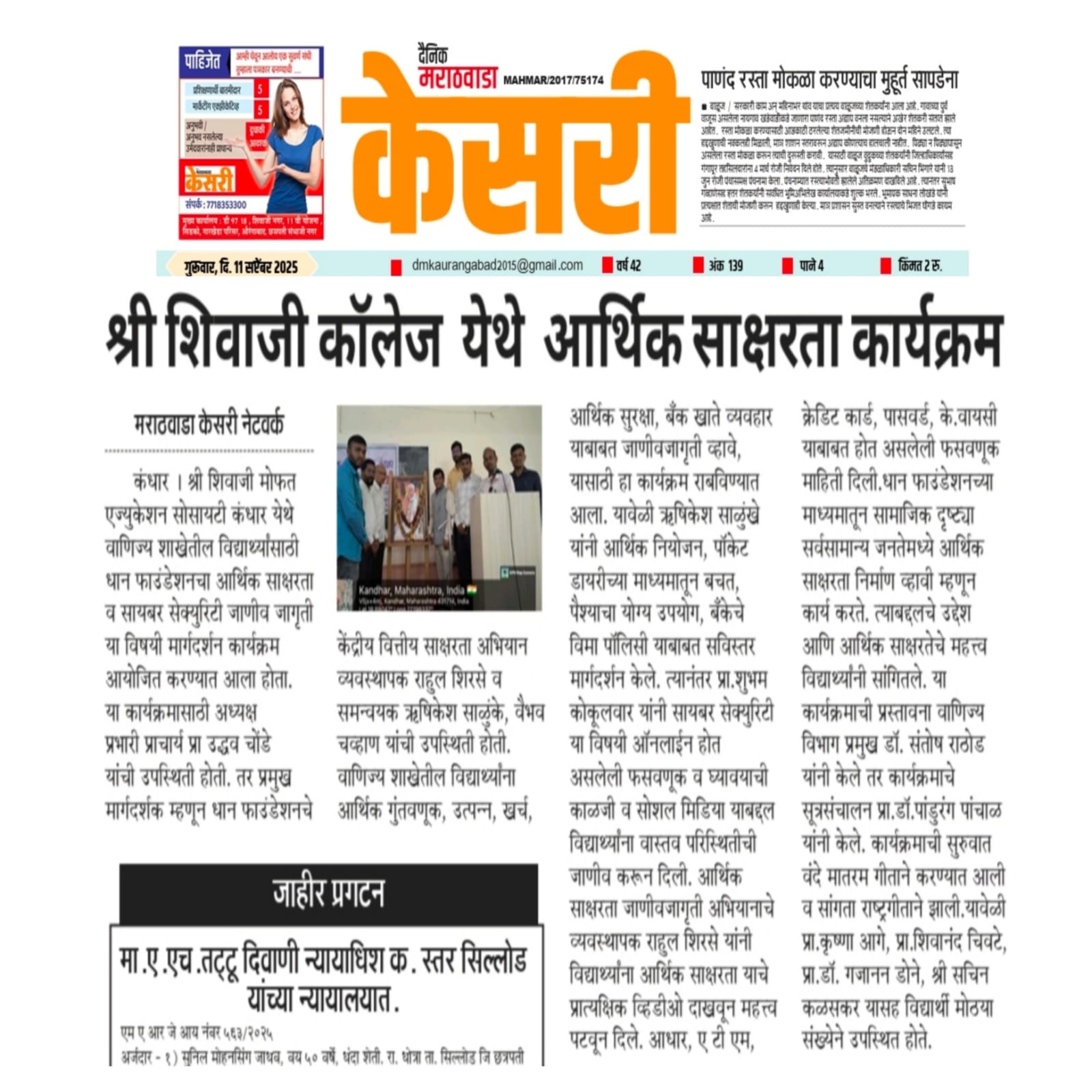 Kandhar, Dist: Nanded. 02466223446 ssckandhar108@gmail.com